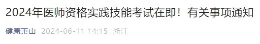 浙江杭州蕭山區(qū)考點(diǎn)發(fā)布2024醫(yī)師資格實(shí)踐技能考試安排及注意事項(xiàng)!通知內(nèi)容包含技能準(zhǔn)考證打印、考試基地安排以及注意事項(xiàng),請(qǐng)相關(guān)考生及時(shí)查看,做好技能應(yīng)試準(zhǔn)備!
