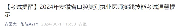 根據(jù)安徽省衛(wèi)生健康委《關(guān)于印發(fā)2024年全省醫(yī)師資格實踐技能考試工作實施方案的通知》及相關(guān)文件要求,結(jié)合工作實際,發(fā)布安徽省口腔類別執(zhí)業(yè)醫(yī)師實踐技能考試溫馨提示。
