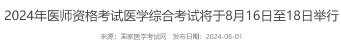 國家醫(yī)學(xué)考試網(wǎng)提醒:2024年醫(yī)師資格綜合筆試8月16日開考!