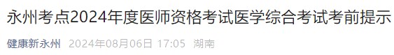 湖南永州考點(diǎn)2024年醫(yī)師資格綜合筆試考生速看考前注意事項(xiàng)!