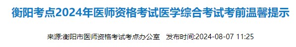 官方通知:湖南衡陽2024醫(yī)師資格綜合筆試考場安排及入場要求