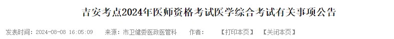 江西吉安考點發(fā)布2024醫(yī)師資格綜合筆試考場安排及注意事項
