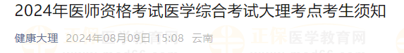 2024年醫(yī)師資格考試醫(yī)學綜合考試將于8月16日至18日統(tǒng)一舉行?,F(xiàn)將大理考點有關要求告知如下,請全體考生遵守執(zhí)行。