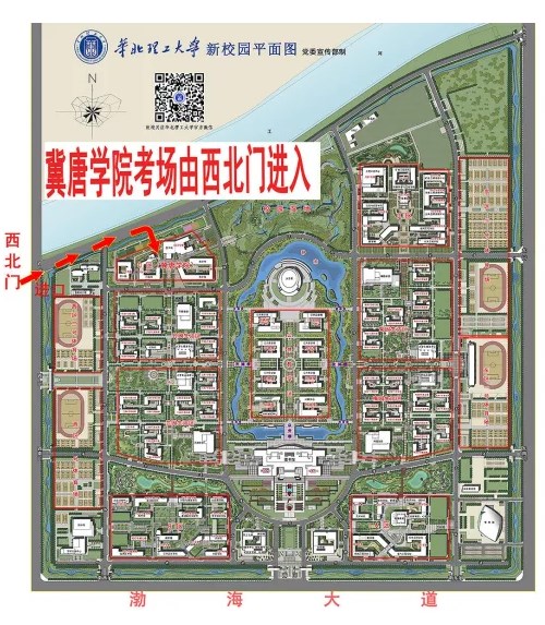 華北理工大學(xué)冀唐學(xué)院考場由西北門步行進(jìn)入,直行500米后向南轉(zhuǎn)再行50米即可。