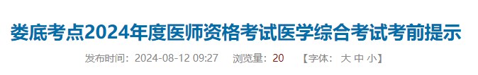 官方通知:湖南婁底2024醫(yī)師資格綜合筆試考場(chǎng)安排及注意事項(xiàng)