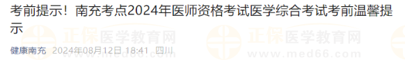 考前提示!南充考點(diǎn)2024年醫(yī)師資格考試醫(yī)學(xué)綜合考試考前溫馨提示