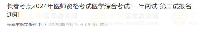 根據(jù)國家醫(yī)學(xué)考試網(wǎng)“2024年醫(yī)師資格考試醫(yī)學(xué)綜合考試“一年兩試”試點(diǎn)網(wǎng)上報名開始”通知要求,現(xiàn)將長春考點(diǎn)“一年兩試”第二試有關(guān)事項(xiàng)公告如下: