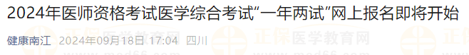 根據(jù)醫(yī)師資格考試工作安排,2024年醫(yī)師資格考試醫(yī)學(xué)綜合考試“一年兩試”網(wǎng)上報(bào)名將于9月18日開始,現(xiàn)將有關(guān)事項(xiàng)通知如下: