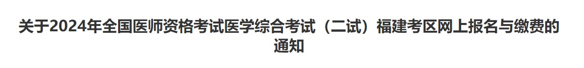 2024年福建考區(qū)繼續(xù)參加全國(guó)醫(yī)師資格考試醫(yī)學(xué)綜合考試“一年兩試”試點(diǎn)工作?,F(xiàn)將有關(guān)事項(xiàng)通知如下: