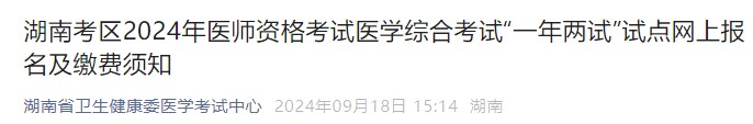 2024年度國家醫(yī)師資格考試醫(yī)學(xué)綜合考試成績已公布,請各考生登陸國家醫(yī)學(xué)考試中心網(wǎng)站www.nmec.org.cn查詢。凡符合本市醫(yī)學(xué)綜合考試“一年兩試”條件的考生,須完成網(wǎng)上報名及網(wǎng)上繳費,方有資格參與考試。