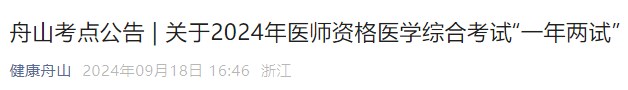 浙江舟山2024醫(yī)師資格資格“一年兩試”報(bào)名繳費(fèi)已開(kāi)始!