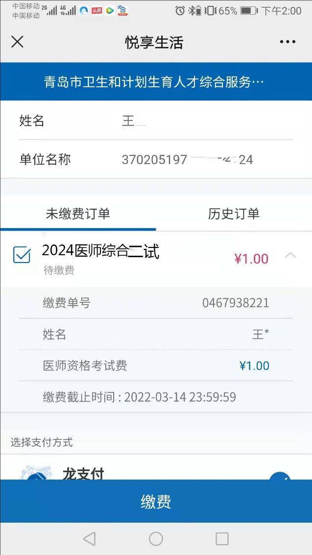 重要提醒:考生必須在國家醫(yī)學(xué)考試網(wǎng)完成醫(yī)考二試網(wǎng)上報(bào)名和青島考點(diǎn)單獨(dú)繳費(fèi)后,報(bào)名方才有效且可以參加考試。若只繳費(fèi)成功,未在國家醫(yī)學(xué)考試網(wǎng)進(jìn)行報(bào)名,則報(bào)名無效,無法參加考試。