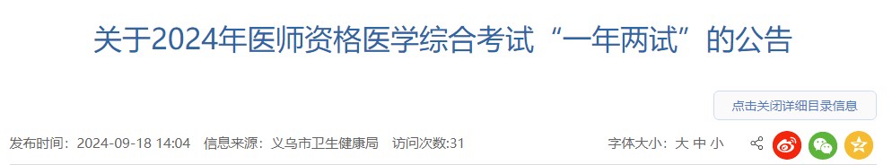 即將結(jié)束!浙江義烏2024醫(yī)師資格“一年兩試”報名繳費24號截止!