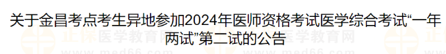 甘肅金昌考點(diǎn)考生異地參加2024年醫(yī)師資格“一年兩試”第二試的公告