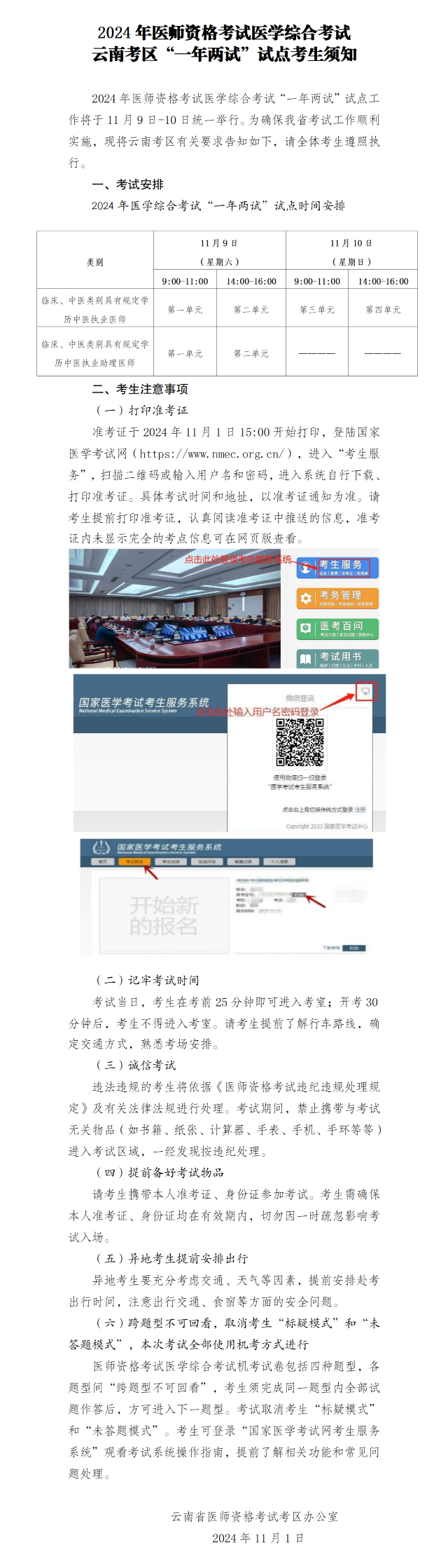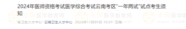 云南考區(qū)2024年醫(yī)師資格綜合考試“一年兩試”試點(diǎn)考生須知