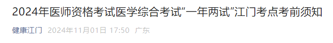 廣東江門2024醫(yī)師資格“一年兩試”考生速看考前須知及考場(chǎng)安排!