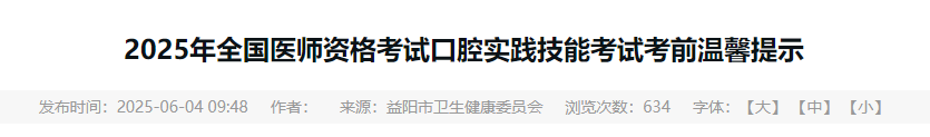 湖南益陽(yáng)考點(diǎn)官方發(fā)布2025年醫(yī)師實(shí)踐技能考試(口腔)基地安排及考生注意事項(xiàng),請(qǐng)相關(guān)考生及時(shí)查看,做好技能應(yīng)試準(zhǔn)備!