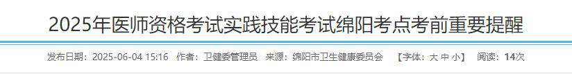 四川綿陽2025年醫(yī)師資格實(shí)踐技能考試基地安排及成績查詢時(shí)間