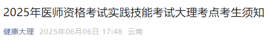 云南大理考點(diǎn)官方公布2025年醫(yī)師資格實(shí)踐技能考試考前須知&成績(jī)查詢(xún)安排,請(qǐng)相關(guān)考生及時(shí)查看,做好技能應(yīng)試準(zhǔn)備!