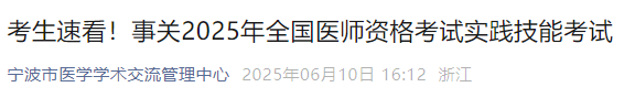 浙江寧波2025年醫(yī)師資格實踐技能考生速看考場安排及注意事項!請相關考生及時查看官方通知要求,做好技能應試準備!