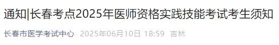 吉林長春2025年醫(yī)師資格實踐技能考生速看考場地點及考生要求!以下為長春考點發(fā)布的官方通知,請相關(guān)考生及時查看,做好技能應(yīng)試準(zhǔn)備!