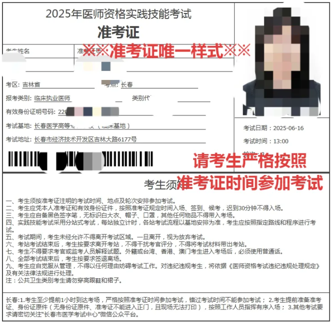 吉林長春2025年醫(yī)師資格實踐技能考生速看考場地點及考生要求