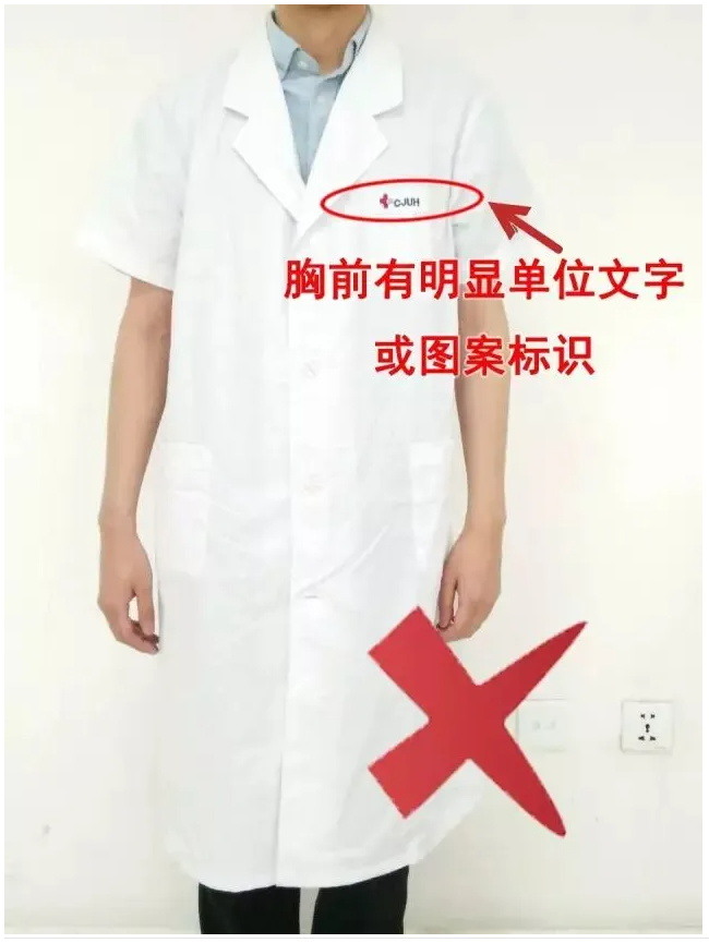 不規(guī)范白大衣樣式:胸前有明顯單位文字或圖案標(biāo)識