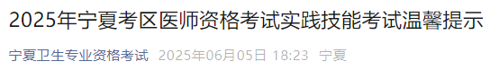 寧夏考區(qū)官方發(fā)布2025年醫(yī)師資格實(shí)踐技能考試安排及注意事項(xiàng),請相關(guān)考生仔細(xì)閱讀了解。