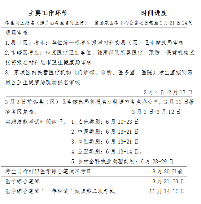惠州考點(diǎn)2020年度醫(yī)師資格考試工作進(jìn)度安排