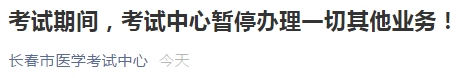 醫(yī)師技能考試期間,長(zhǎng)春市醫(yī)學(xué)考試中心暫停辦理一切其他業(yè)務(wù)!