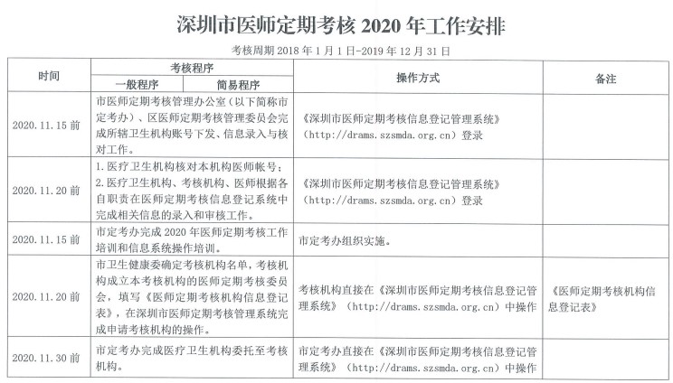 快收藏2020年深圳市醫(yī)師定期考核重要時(shí)間節(jié)點(diǎn)!