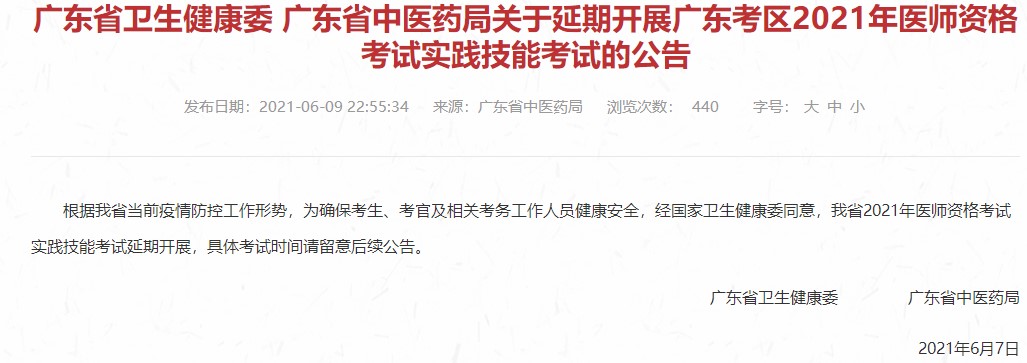 關(guān)于延期開展廣東考區(qū)2021年醫(yī)師資格考試實踐技能考試的公告