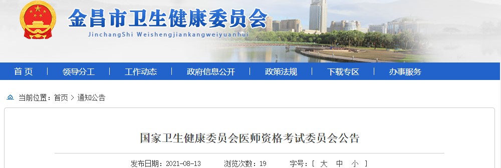 金昌市2021年國家醫(yī)師綜合考試延期公告