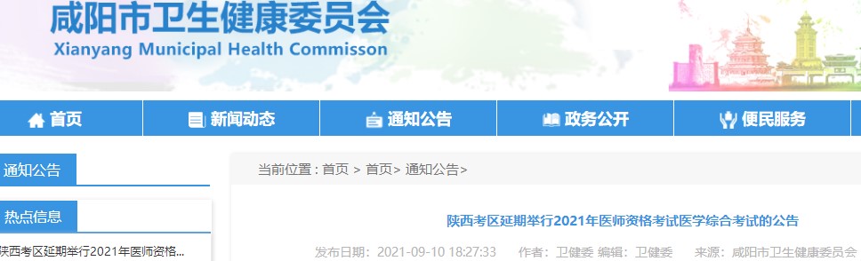 咸陽(yáng)考點(diǎn)發(fā)布陜西考區(qū)延期舉行2021年醫(yī)師資格考試醫(yī)學(xué)綜合考試的公告