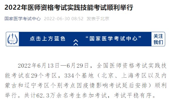 國家醫(yī)學(xué)考試網(wǎng)2022年醫(yī)師資格考試實(shí)踐技能考試順利舉行!
