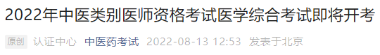 國家中醫(yī)藥管理局2022年中醫(yī)類別醫(yī)師資格考試醫(yī)學(xué)綜合考試即將開考!