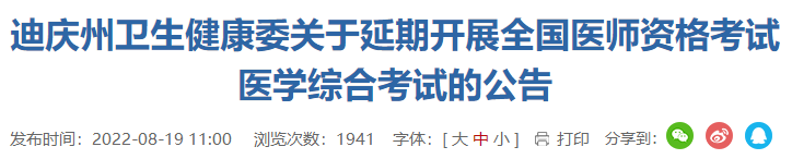 迪慶州衛(wèi)生健康委關(guān)于延期開展全國醫(yī)師資格考試醫(yī)學(xué)綜合考試的公告