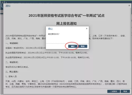 4、仔細閱讀彈出的通知后,選擇右下角“二試報名”后,點擊“確定”。