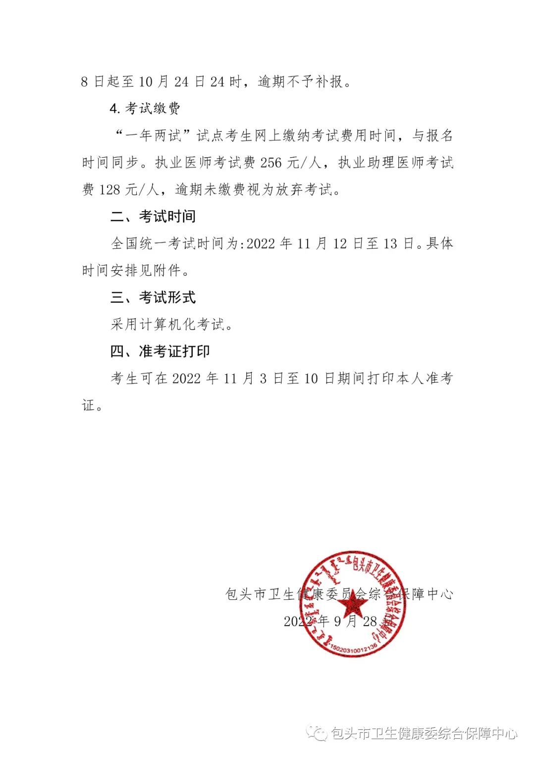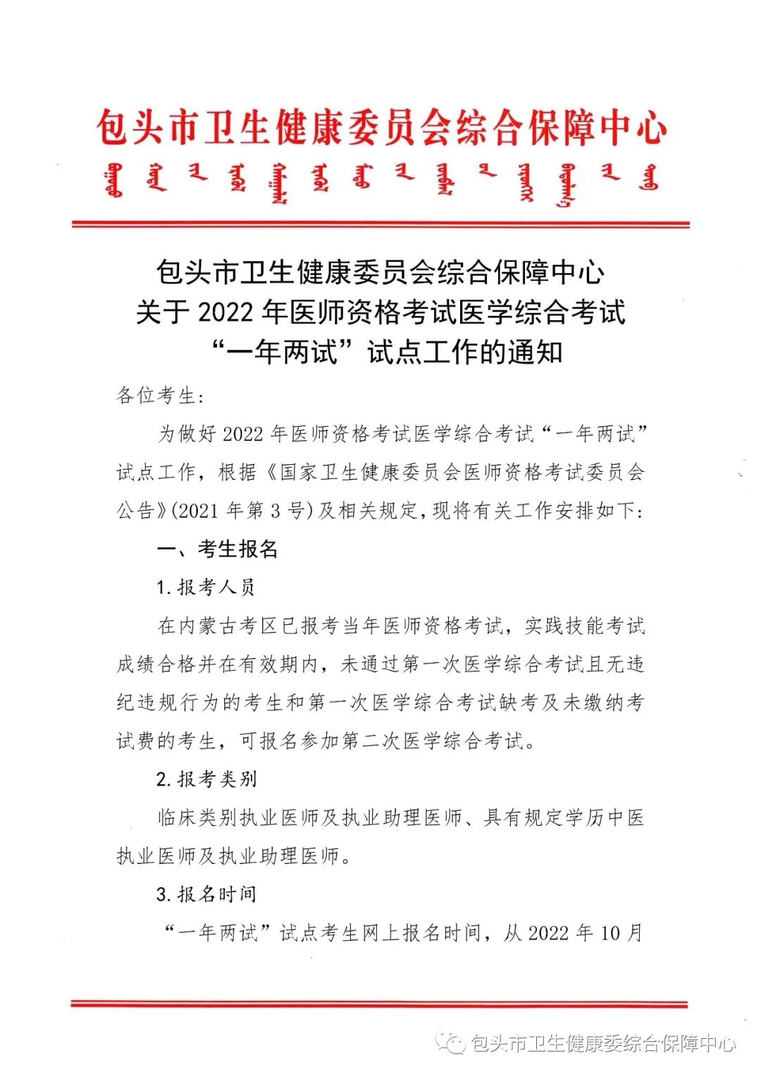 包頭市關(guān)于2022年醫(yī)師資格考試醫(yī)學(xué)綜合考試“一年兩試”試點(diǎn)工作的通知