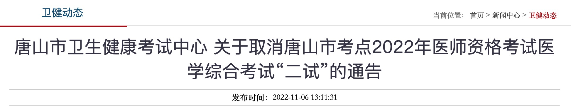 關(guān)于取消唐山市考點(diǎn)2022年醫(yī)師資格考試醫(yī)學(xué)綜合考試“二試”的通告
