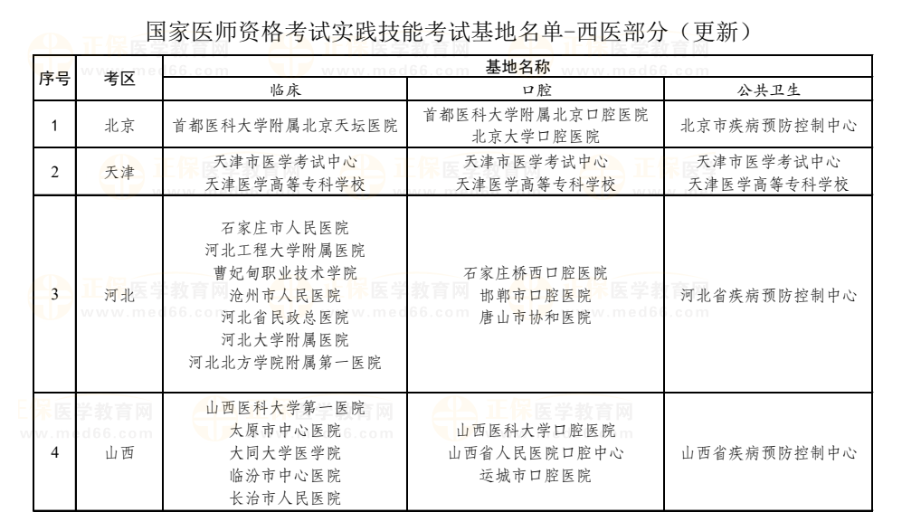 國家醫(yī)師資格考試實踐技能考試基地名單—西醫(yī)部分(2023年5月份更新)