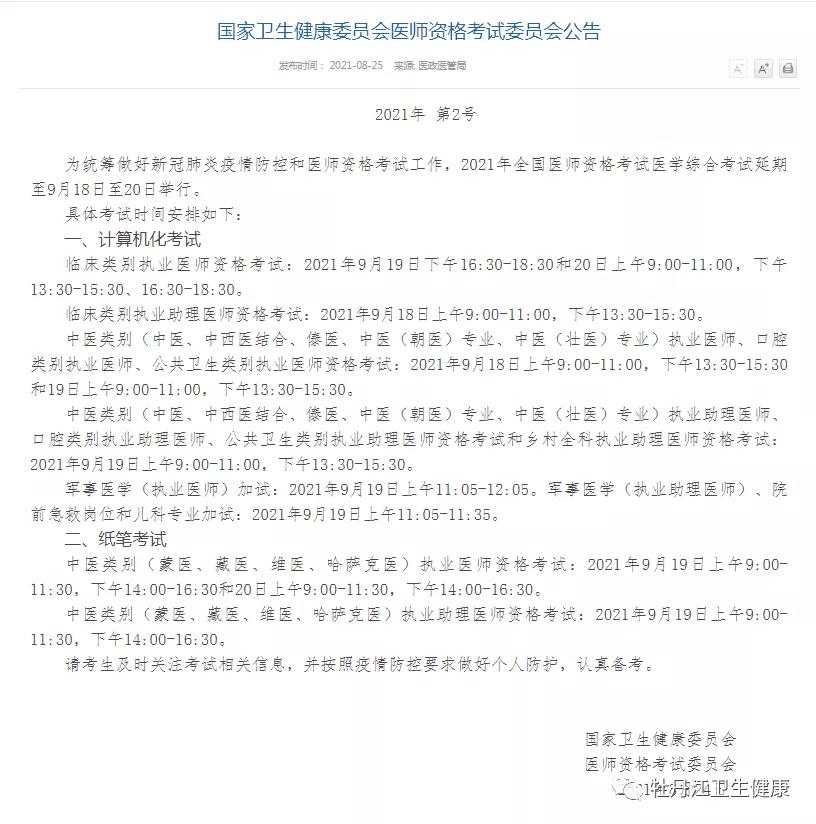 牡丹江2021年醫(yī)師資格考試醫(yī)學(xué)綜合考試延期考試時(shí)間的通知