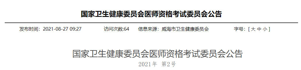 威海衛(wèi)健委發(fā)布了2021年醫(yī)師資格考試綜合筆試考試時(shí)間