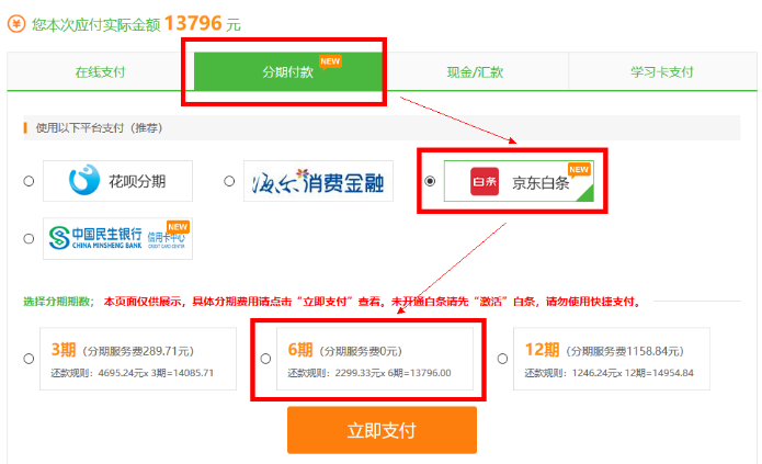 第四步:在支付頁面,選擇分期付款-京東白條進行支付!