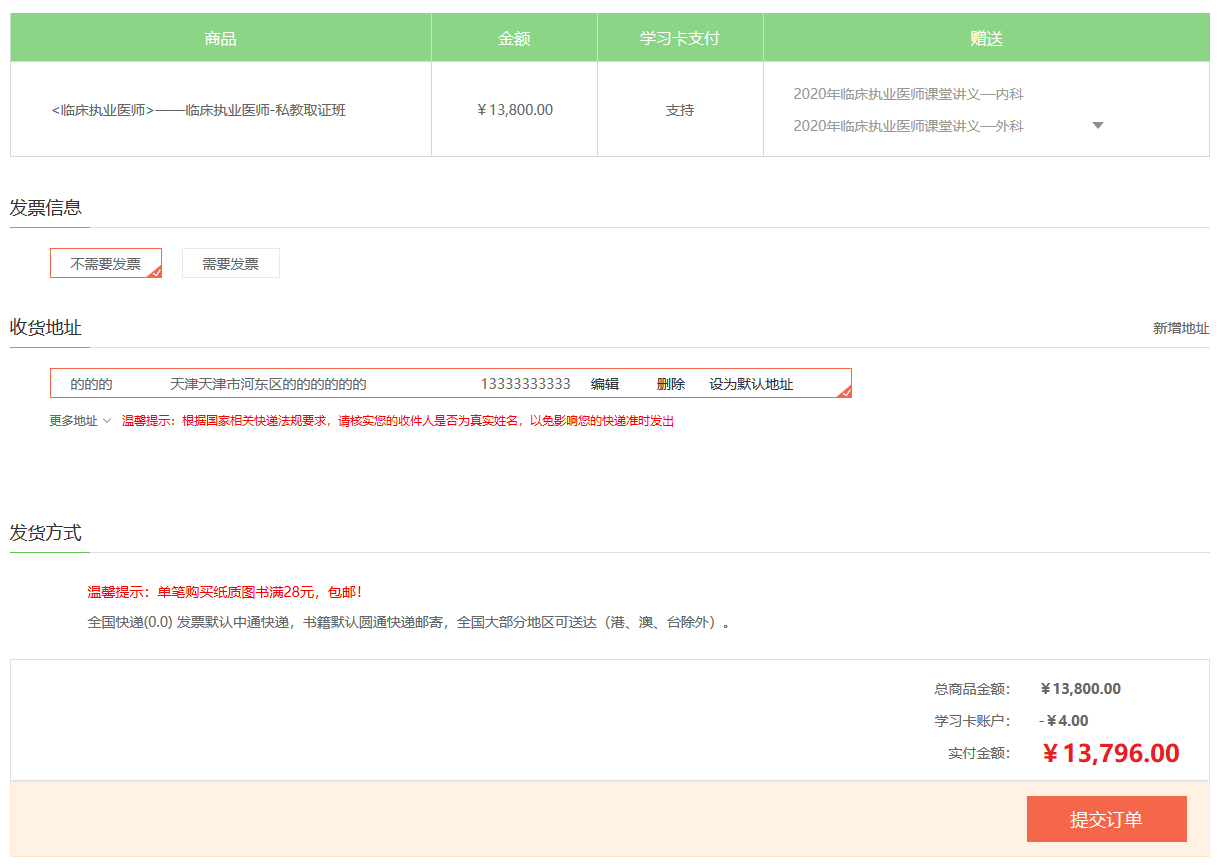 第三步:在訂單頁確認無誤后,點擊“提交訂單”;