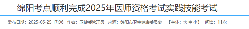 四川綿陽考點共3581名考生參加2025年醫(yī)師資格實踐技能考試,以下為官方報道內(nèi)容: