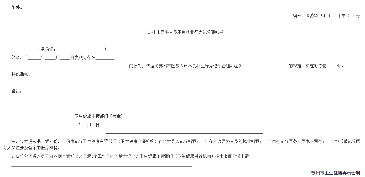 【相關(guān)通知】關(guān)于印發(fā)《蘇州市醫(yī)務(wù)人員不良執(zhí)業(yè)行為記分管理辦法》的通知