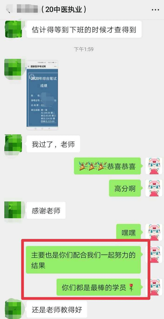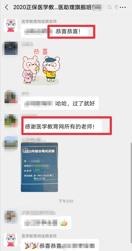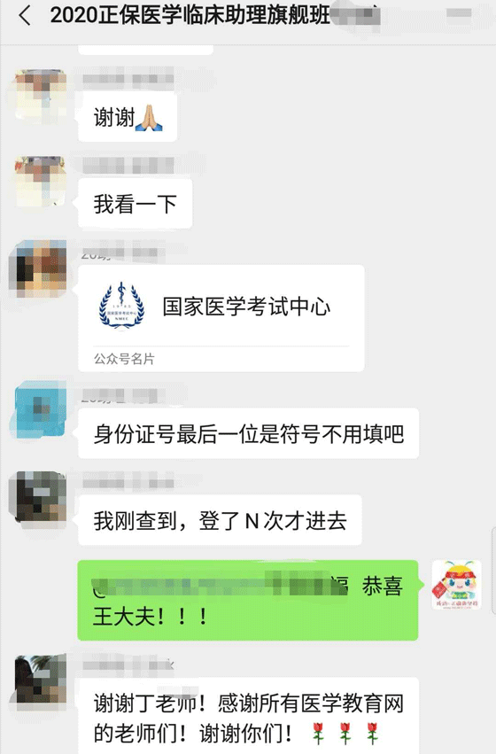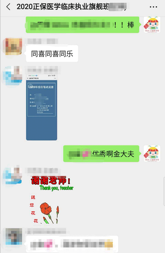 2020醫(yī)師考試終于出成績啦!面授班學員也安耐不住激動的小心臟,紛紛發(fā)來喜報,分享這激動人心的時刻!在此醫(yī)學教育網(wǎng)面授班恭喜各位考生順利通過考試,感謝大家對醫(yī)學教育網(wǎng)的信任!
