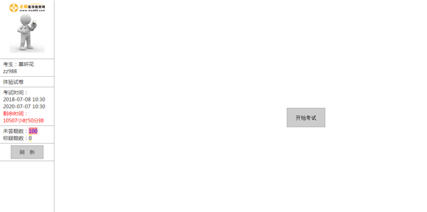 開(kāi)始考試:點(diǎn)擊“開(kāi)始考試”按鈕,進(jìn)入答題頁(yè)面,在右側(cè)主顯示區(qū)顯示試題信息,左側(cè)主要顯示本次考試的基本信息、考試時(shí)間倒計(jì)時(shí)提醒、考生信息以及試題答題提示信息,在試題顯示區(qū)下方為操作區(qū)和試題目錄區(qū)域,點(diǎn)擊不同按鈕完成不同的操作,點(diǎn)擊試題目錄會(huì)在試題顯示區(qū)顯示點(diǎn)擊試題的題干和選項(xiàng)。