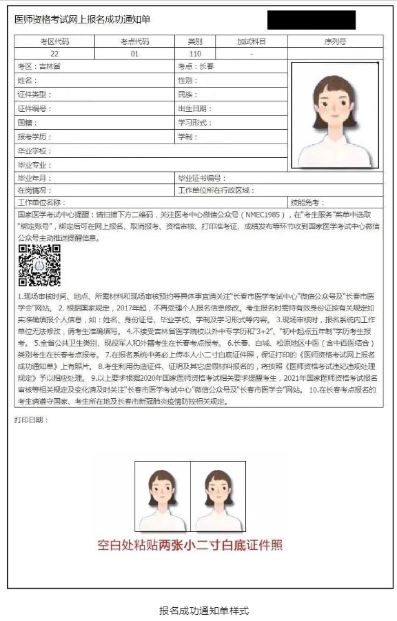 1、《網(wǎng)上報(bào)名成功通知單》原件1份,并在下方粘貼兩張小二寸白底照片;